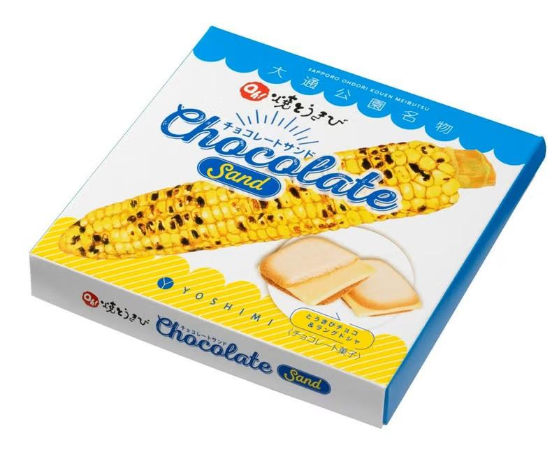 焼とうきびの香ばしさと、ほんのり塩味を感じるとうきびチョコレートに、サクサク軽いくちどけのラングドシャ。